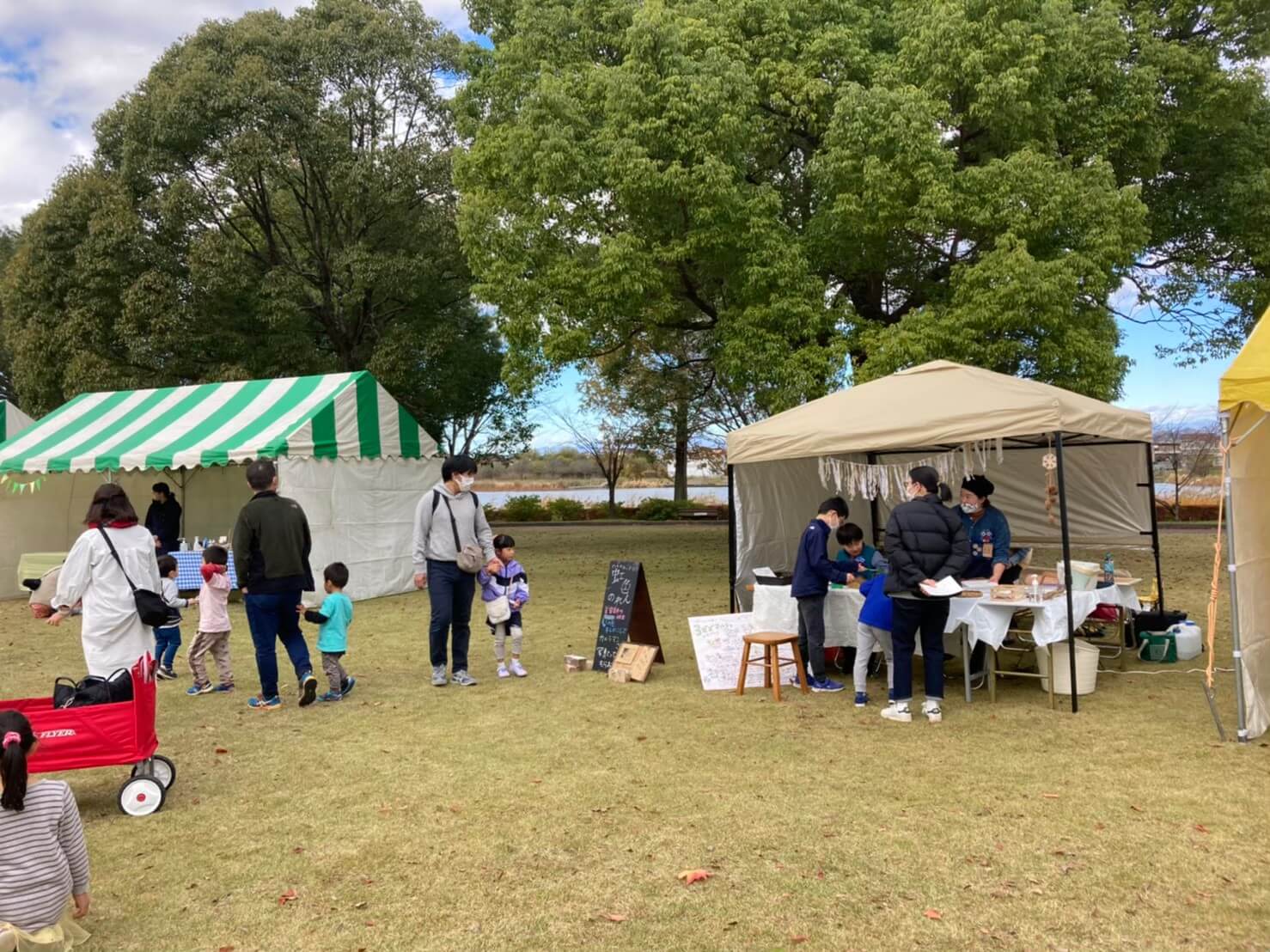 それぞれの個性的なブースが、館林のつつじが岡公園大芝生広場に並びました。
